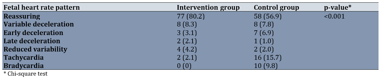 Table 2. Comparison of the frequency of fetal heart rate patterns between groups