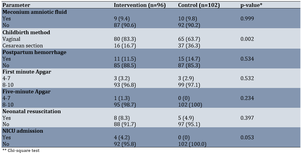 Table 3. Comparison of the frequency of maternal and neonatal outcomes between groups