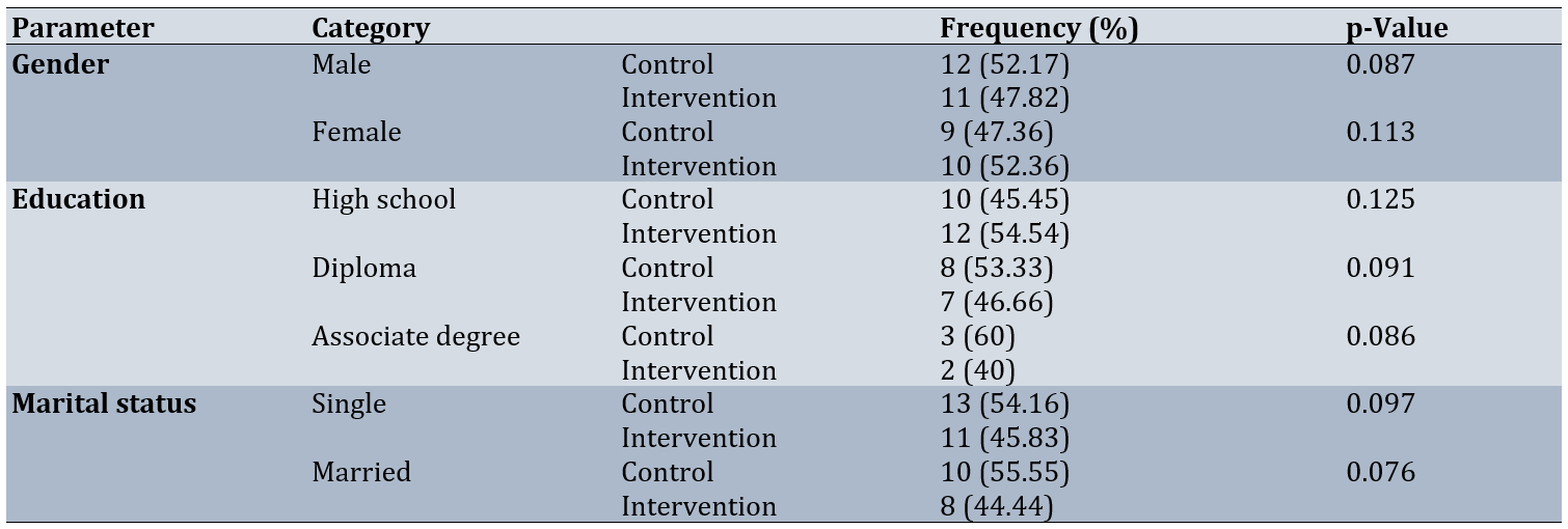 Table 1. Comparison of the frequency of demographic characteristics of participants