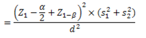 The sample size was determined based on the specific calculation formula for two-group clinical trial studies: